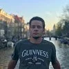 Carlos holding up a peace sign as I get shots of our floating tent!